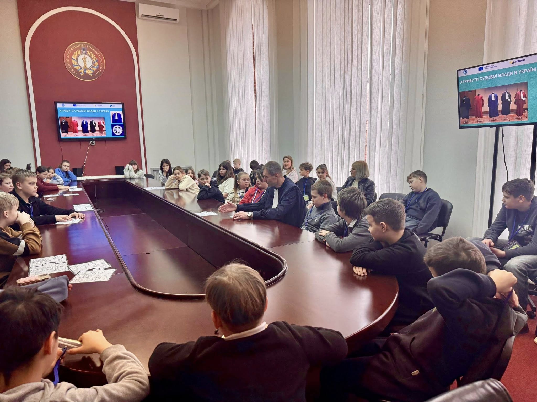 Під час екскурсії учні побували у залі судових засідань, де мали змогу відчути себе учасниками судового процесу.